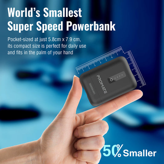 10000mAh compacte smart charging powerbank met dubbele USB-A- en USB-C-uitgang
