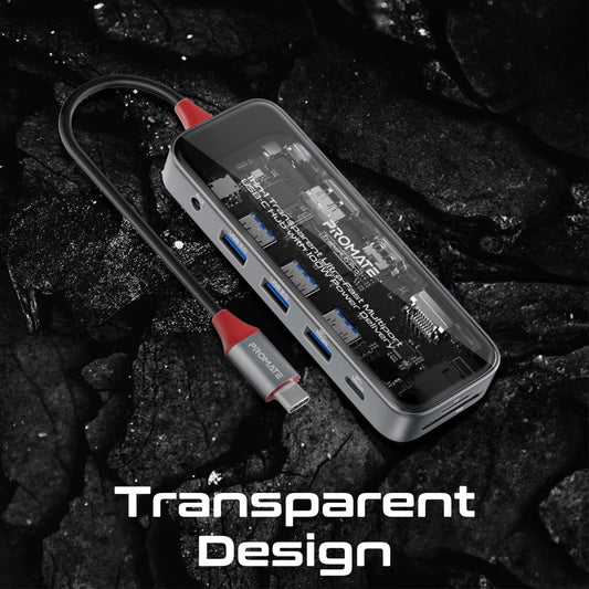 11-in-1 transparante, ultrasnelle multipoort USB-C-hub met 100 W Power Delivery